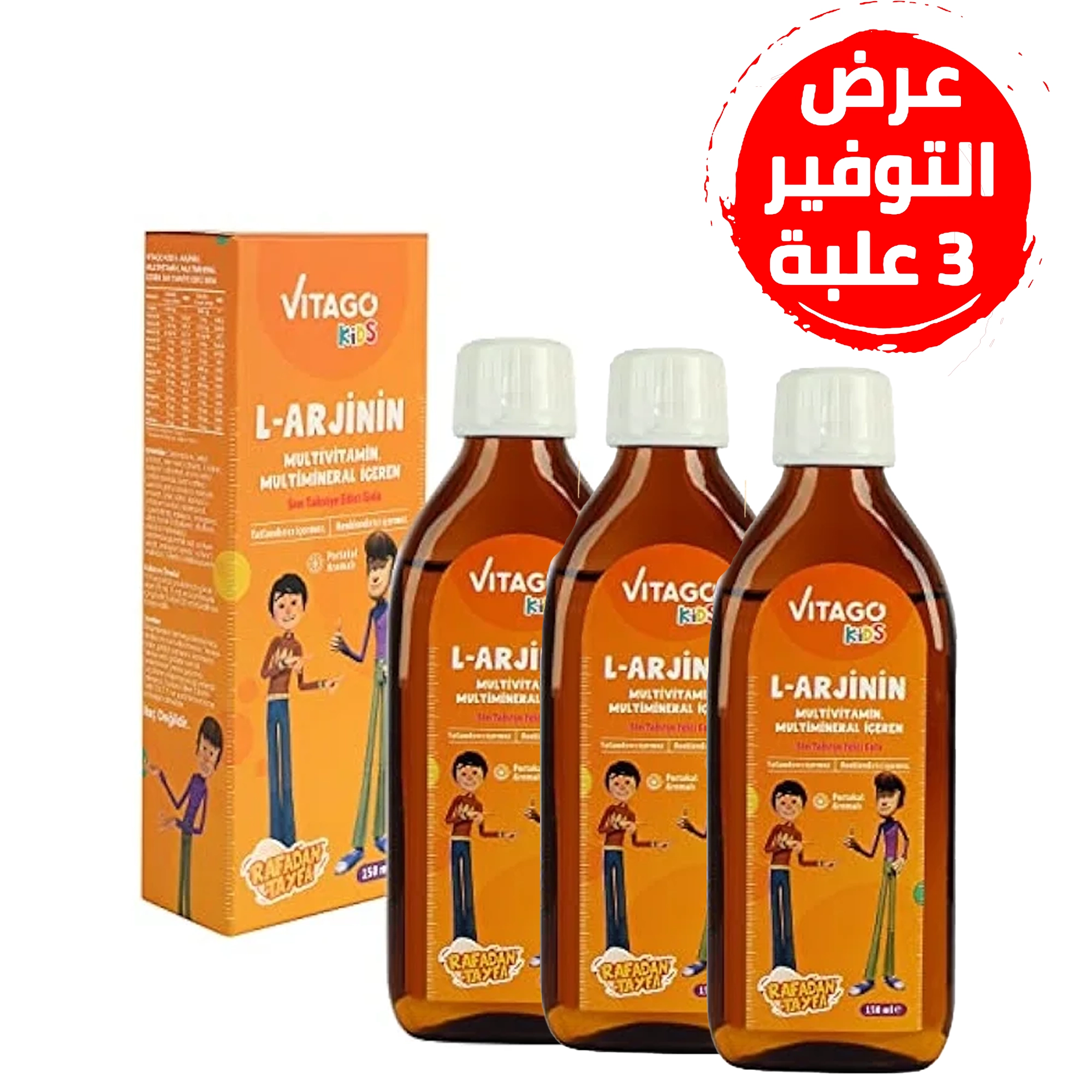 - Vitago Kids L-Arginine شراب فيتاجو لزيادة الطول والنمو بالأرجنين،